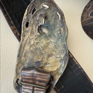 Preowned vintage 80’s Nina Gelardi adjustable belt. Embossed leather belt. Adjustable at the buckle. Was signed but signature has worn off on the leather.