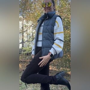 Stay warm and stylish with this versatile gray puffer vest. Perfect for layering in cooler weather.