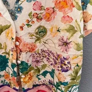 Rachel Zoe whimsical aftermarket cropped linen Floral Blouse