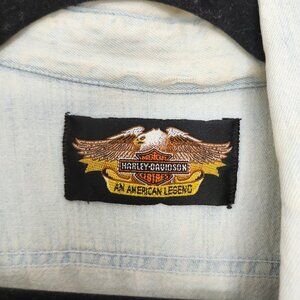 Harley Davidson Cotton Denim Shirt Vintage Mens XL Light Blue Motorcycle Biker