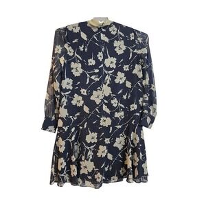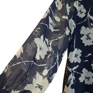 Alexa Amor Floral Tie Neck Dress Women's Medium Navy Long Sleeve Ruffle