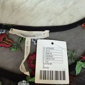 Urban Outfitters Sheer mesh Embroidered Black Floral Crop Top Size S NWT