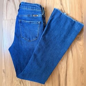 KanCan Women’s Flare Jeans Size 3 Raw Hem Denim Boho Y2K