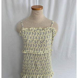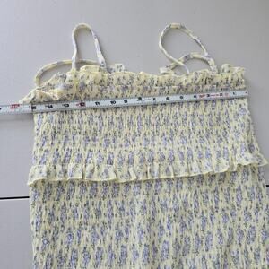 Mable Esme Sleeveless Tiered Ruffle Dress Women's L Yellow Purple Floral Midi