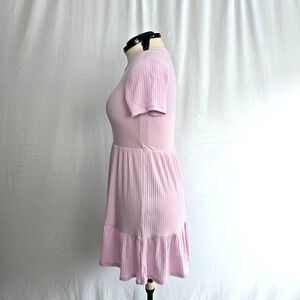 Lily Rose Short Sleeve Ruffle Dress Women's M Pink Textured Fit and Flare