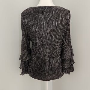 Alfani Metallic Black Blouse with Ruffle Sleeves