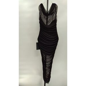 Lulus Sunama Mesh Ruched Bodycon Midi Dress Black Basic Sleeved Medium