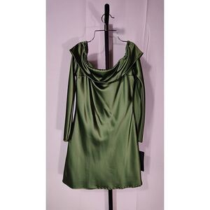 Lulus Luxurious Vision Satin Off-The-Shoulder Mini Dress Green M