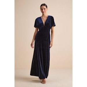 Lulus Women Mystical Charm Velvet Flutter Sleeve Maxi Dress Blue Navy M
