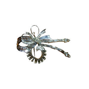 Vintage Sterling Clear Rhinestone Bow Dangle Brooch Pin Silver Tone