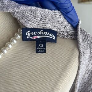 Chic open-front cardigan by Freshman. Light gray tie dye knit. Perfect for layering.
