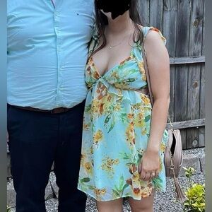 Super cute fun floral mini dress. Super lightweight and perfect for a summer wedding.
