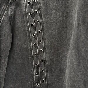 American Eagle Lace Up Washed Black Denim Jacket Women’s Large