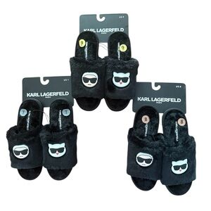 Karl Lagerfeld Black Furry Slippers Size 7, 8, 9