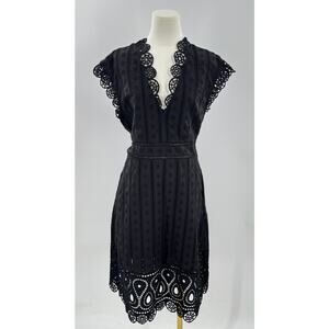 Opening Ceremony Black Lace Eyelet Sleeveless V-neck Dress Knee Length Sheath 8