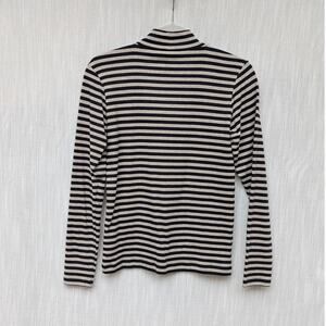 Muji Black/Cream Cotton Striped Turtleneck Long Sleeve Top, size S
