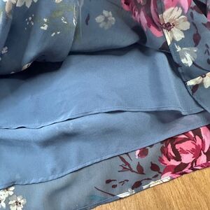 Color: Dusty blue with pink, ivory, and green floral print