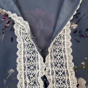 White House Black Market Floral Blouse Blue Lace V-Neck Long Sleeve Size 10