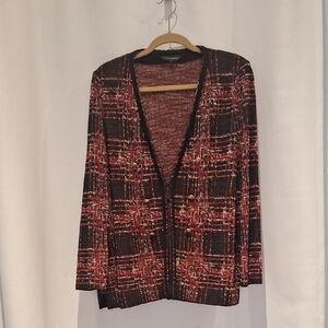 Ming Wang Red and Black Plaid Cardigan Jacket Size M