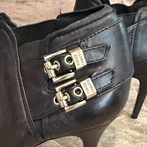 Vince Camino Chic Black Leather Heeled Boots with Buckle Detail size 8