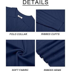 Coofandy Men Navy Blue Polo Long Sleeve V Neck Knit Lightweight Pullover Sweater
