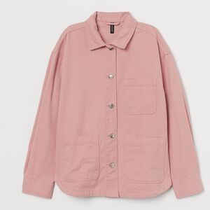 Shirt jacket in cotton twill. Collar, buttons at front, open chest pocket, and two open front pockets. Dropped shoulders and long sleeves with button at cuffs. Unlined.