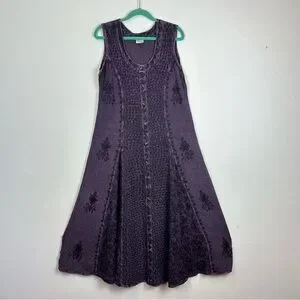 Vintage 1990’s Magic Embroidered Purple Maxi Tank Dress And Shrug Set L Boho