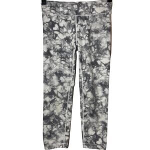 Athleta Girl Powervita Capri Leggings High Rise Cropped Gray White Tie Dye L/12