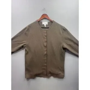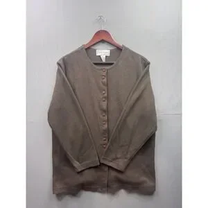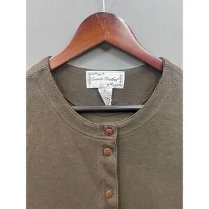 Sarah Bentley Vintage Womens Cardigan Sweater Olive Green Button Front Size L