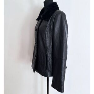 EUC BGSD 100% Lambskin Leather Sheep Shearling Fur Collar Y2K 90’s Black Jacket