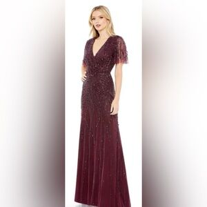Step into elegance with this stunning size 4MacDuggal burgundy evening gown. Perfect for special occasions, this dress features intricate detailing and a flattering silhouette.
