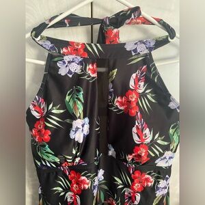 Black floral women’s plus size SHEIN 3XL one piece swimsuit, halter top style with mesh front, only worn once to check size