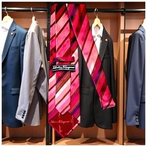 Salvatore Ferragamo Men’s Silk Necktie. Red, Purple, Pink.