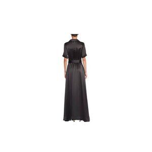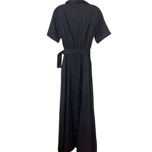 New STAUD Millie Satin Belted Maxi Shirt Dress Black Sz 2 MSRP $495