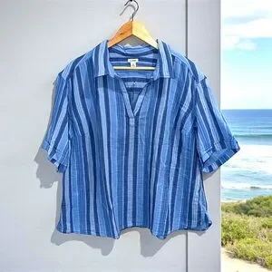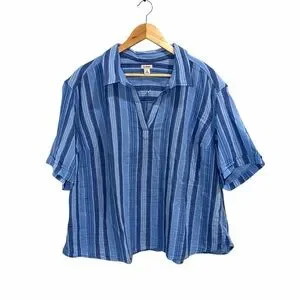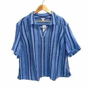 L.L. Bean NWT Coastal Cloud Gauze Polo Blue Striped Blouse Size 2X PLUS