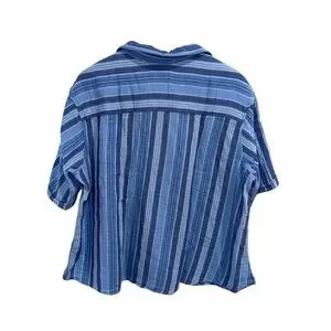 L.L. Bean NWT Women’s Coastal Cloud Gauze Polo Blue Striped Blouse Size 2X PLUS