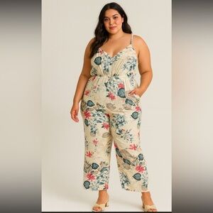 SHEIN Curve 2XL Floral Print Jumpsuit Spaghetti Strap V Neck
