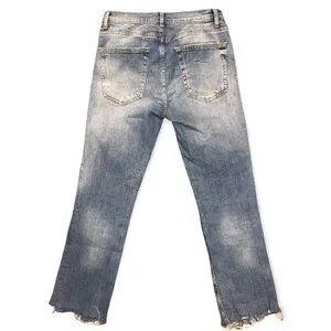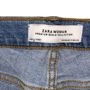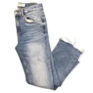 Zara jeans, used and worn more than a few times! Other than the stain on pants item is in good condition and almost like new! Has some stretch to it. Love this style has a distressed look on pants area! Pants end around or above the ankle!
