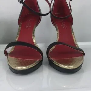 NWOB Shoes of Prey Stiletto Platform Heel Open Toe Ankle Strap Leather Black 10