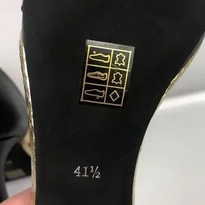 Shoes of Prey Stiletto Platform Pump Heel Open Toe Ankle Strap Leather Black Gold Nordstrom Evening Sexy