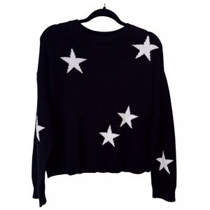 Chic black sweater with bold white star accents. Perfect for casual elegance. Regular price $248