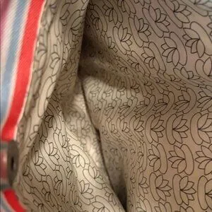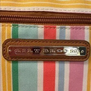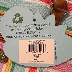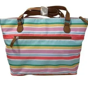 Lily Bloom Striped Tote Bag Recycled Material Multicolor With Brown Handles & Fl