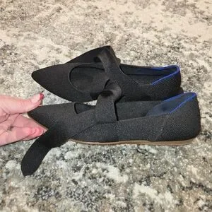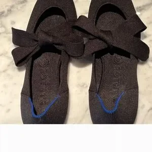 ROTHY'S Pointed Toe Bow Mary Jane Ballet Flats Black Size 6.5 Retired