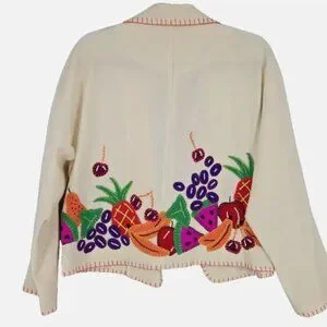 Vintage DKNY Womens Runway Collection Wool White Fruit Blazer Jacket XS Small