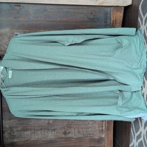 LOGO Lounge Chiffon Swiss Dot Open Front Cardigan in Lagenlook Green- Women's XL