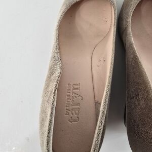 Anthropologie Taryn Rose Beige Lurex Round Toe Leather Wedge Shoes Size 6.5 M