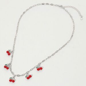 • Add a fun twist to your style with this cherry charm chain necklace. Featuring multiple dangling fruit charms on a sleek link chain, it's a perfect accessory for casual outfits or themed occasions.