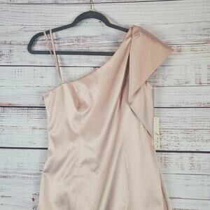 Eliza J One Shoulder Satin Sheath Dress 10 Dusty Rose Glam Event Lux Wedding NWT