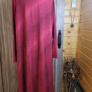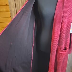 Stylish pink and black long open cardigan with front pockets. Perfect for layering and the upcoming season.