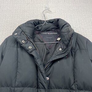 Tommy Hilfiger Black Down Quilted Puffer Jacket Full Zip Women Sz Small Read